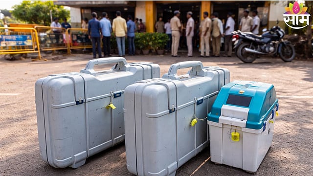 Reserve EVM machines recovered outside a hotel in Mohol after Solapur ZP polling, triggering political controversy. Saam Tv