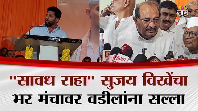 राजकारणात भावा-बहिणींमध्ये, पित्रा-पुत्रांमध्ये निवडणुकीचं शीतयुद्ध रंगताना तुम्ही अनेकदा पाहिलं असेलच...मात्र भऱसभेत एकमेंकाना राजकारणाचे धडे देण्याचा अनोखा प्रकार विखे पिता- पुत्रानं केलाय... राहुरीचे आमदार शिवाजी कर्डिले यांच्या निधनानंतर रिक्त झालेल्या जागेवर मुलगा अक्षय कर्डिले यांना विधानसभेची उमेदवारी द्यावी, यासाठी समर्थकांनी मेळाव्याचे आयोजन केलं होतं.. यावेळी भरसभेत सुजय विखेंनी विरोधकांपेक्षा गाडीत बसणाऱ्या कार्यकर्त्यांपासून सावध राहा, असा सल्ला अक्षय कर्डिलेसह वडील राधाकृष्ण विखे पाटलांना दिल्यानं एकच हशा पिकलाय...