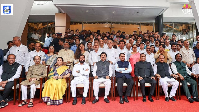 अंबादास दानवे, मुख्यमंत्री देवेंद्र फडणवीस, उपमुख्यमंत्री एकनाथ शिंदे आणि अजित पवारांसह सगळे आमदार फोटोसेशनसाठी पायऱ्यावर जमलेले. तेवढ्यात पायऱ्यावरुन गर्दीतून वाट काढत उद्धव ठाकरे येताना दिसले....ठाकरेंना येताना पाहिलं आणि आधीच येऊन बसलेल्यांमध्ये थोडी चुळबुळ झाली... शिरसाट बाजूला झाले... आणि सगळेच उभे राहिले. ठाकरे आता पहिल्या रांगेकडे आले... त्यांना आपल्याच दिशेने येताना बघून उपमुख्यमंत्री एकनाथ शिंदेंनी दोन्ही हातांनी आपला चष्मा उगाचच सावरला...