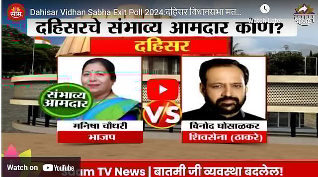 Vinod Ghosalkar vs Manisha Chaudhary , Dahisar Vidhan Sabha Exit Poll 2024: २०१९ च्या विधानसभा निवडणुकीत भाजपच्या मनीषा चौधरी यांनी काँग्रेसच्या अरूण सावंत यांना हरवून सलग दुसऱ्यांदा विजय मिळवला होता. यंदाही भाजपचा हा किल्ला अभेद्य राहणार की काही वेगळं चित्र पहायला मिळणार , याकडे सर्वांचे लक्ष लागले होते. पण दहिसर विधानसभा मतदारसंघात पुन्हा एकदा भाजपचाच आमदार विजयी होईल, असं दिसतेय.एक्झिट पोलच्या अंदाजामध्ये भाजपच्या उमेदवाराचे पारडे जड असल्याचा दिसून येत आहे. दहिसरमध्ये ठाकरेंनी ऐनवेळी उमेदवार बदलला होता. त्याचा फटका बसल्याचे दिसतेय.