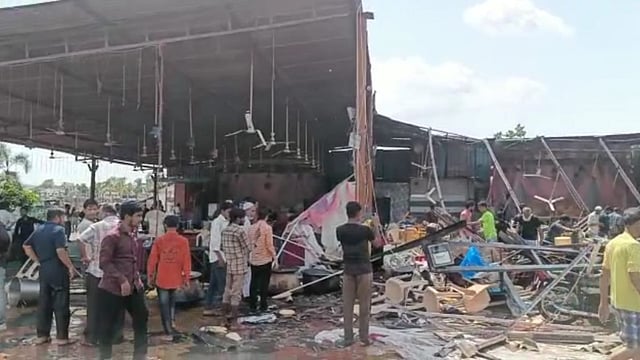 Bhivandi News : भिवंडी तालुक्यातील पडघा, बोरीवली आदी परिसरात वादळी वाऱ्यासह मुसळधार पाऊस (rain in bhivandi) झाला. वादळी वा-यामुळे अनेक घरांवरील पत्रे उडून गेले. दरम्यान भिवंडी तालुक्यातील पडघा परिसरात एका लग्न साेहळा सुरु असताना वादळी वारे आल्याने हाॅलचे छप्पर उडून गेले तर व-हाडी मंडळींच्या अंगावर पत्रा पडल्याने काही जण जखमी झाले. (Maharashtra News)