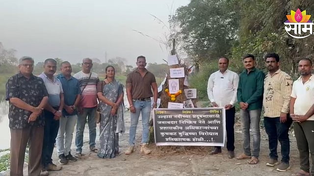 कल्याणमधील मोहने येथे उल्हास नदीसाठी निषेध होळी करण्यात आली