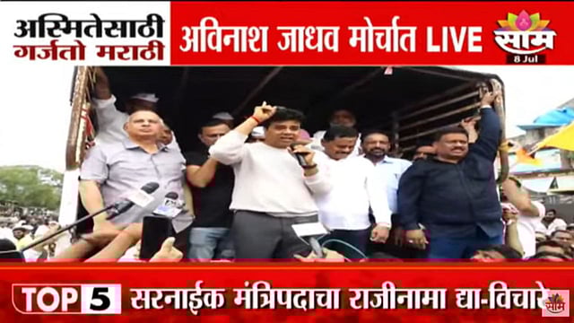 मीरा-भाईंदरमध्ये मनसे आणि ठाकरे गटाकडून मराठीच्या मुद्द्यावरून मोर्चा काढण्यात आला होता. हा मोर्चा दडपण्याचा प्रयत्न सरकारकडून करण्यात आल्याचा आरोप केला जात आहे. या मोर्चाचे नेतृत्व करणाऱ्या मनसे नेते अविनाश जाधव यांना पोलिसांनी मोर्चापूर्वीच ताब्यात घेतलं होतं. त्यानंतर मराठी नागरिकांनी मोठ्या संख्येने रस्त्यावर उतरत मोठं आंदोलन केले. पोलिसांनी सोडल्यानंतर अविनाश जाधव यांनी थेट मीरारोड गाठले आणि आंदोलकांमध्ये सहभागी झाले. यावेळी त्यांनी सरकारवर जोरदार टीका करत त्यांना इशारा दिला. 'महाराष्ट्रात कुठेही मराठी माणसासोबत काही घडलं तर असेच मोर्चे निघतील याची सरकारने दखल घ्यावी.', असा इशारा अविनाश जाधव यांनी दिला.