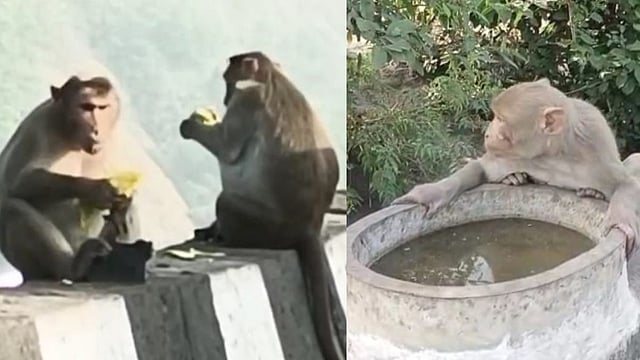 मावळ, पुणे : सध्या मनुष्य प्राण्याला उन्हाच्या (Summer) झळा सोसवत नाही. अंगाची लाही लाही होताना दिसते. याचे मुख्य कारण म्हणजे जंगले तोडून मानवाने सिमेंट ची जंगले उभी केली आहेत. त्यामुळे आता वन्य जीव देखील या सिमेंटच्या जंगलात येऊ लागले आहेत. अन्न आणि पाण्याच्या शोधत सध्या पुणे मुंबई एक्सप्रेस हायवेवरील खंडाळा घाटात अनेक माकडे (Monkey's) येताना दिसून येत आहेत. (monkeys are facing summer heatwave on mumbai pune expressway)