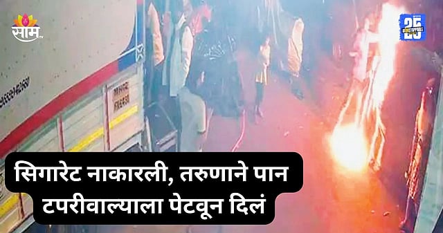 मुंबईमध्ये सिगारेट दिली नाही यावरून झालेल्या वादात एका तरुणाने पान टपरीवाल्याला जिवंत जाळले. या घटनेत पीडित व्यक्ती गंभीर जखमी झाली असून त्याच्यावर सध्या रुग्णालयात उपचार सुरू आहे. ही घटना सीसीटीव्ही कॅमेऱ्यात कैद झाली आहे. या घटनेनंतर आरोपीने घटनास्थळावरून पळ काढला. या प्रकरणी पोलिसांनी गुन्हा दाखल करत आरोपीला अटक केली. या घटनेमुळे मुंबईत खळबळ उडाली आहे.
