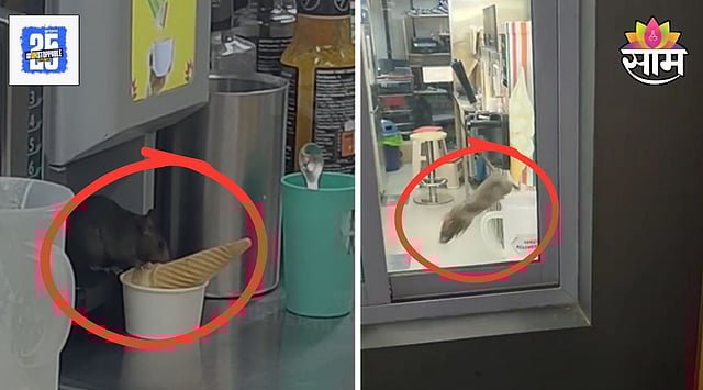 व्हायरल व्हिडीओमध्ये दुकानातील आईस्क्रीमच्या मशिनवर उंदीर फिरत असल्याचे पाहायला मिळते. दुकानाच्या टेबलावर आईस्क्रीमचा कोन ठेवलेला आहे. टबवर चढून एक उंदीर आईस्क्रीमचा कोन चावत असल्याचे दिसते. नवी मुंबईतील प्रसिद्ध मॉलमध्ये घडलेल्या या घटनेमुळे नागरिकांनी संताप व्यक्त केला आहे. दुकानावर कारवाई व्हावी अशी मागणी केली जात आहे.