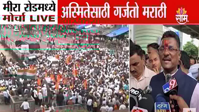 मीरारोडवर अखेर मनसे आणि शिवसेनेचा मोर्चा निघाला. दोन तासांच्या राड्यानंतर अखेर हा मोर्चा काढण्यात आला. विशेष म्हणजे ज्या मार्गावरून मोर्चा काढण्याला पोलिसांनी परवानगी नाकारली होती, त्याच मार्गावरून हा मोर्चा काढण्यात आला. मोर्चात हजारो कार्यकर्ते सहभागी झाले होते. दरम्यान, मोर्चात सहभागी होण्यासाठी आलेल्या प्रताप सरनाईकांना मोठ्या नामुष्कीला सामोरं जावं लागलं. प्रताप सरनाईकांना मोर्चेकऱ्यांनी अक्षरशः मोर्चातून हुसकावून लावलं. त्यांच्यासमोर 'पन्नास खोके, एकदम ओके'च्या अशा घोषणाही दिल्या. त्यामुळे प्रताप सरनाईकांना या मोर्चातून काढता पाय घ्यावा लागला.