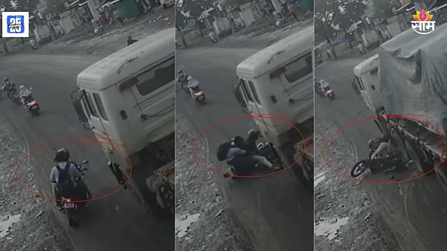 Pune tragic accident CCTV video goes viral : पुण्यात काळजाचा ठोका चुकवणारा अपघात झालाय. दुचाकी अचानक स्लीप झाली अन् धावत्या ट्रेलरच्या चाकाखाली आली. दुचाकीवरील एका तरूणाचा या अपघातात चिरडून मृत्यू झालाय. तर चालक गंभीर जखमी झाला आहे. या भयंकर अपघाताचा व्हिडिओ समोर आलाय. चाकण-तळेगाव मार्गावर हा अपघात झाला आहे. या अपघात एकाचा जागीच मृत्यू झाला, तर दुसरा तरुण गंभीर जखमी झाला आहे. त्याच्यावर रुग्णालयात उपचार सुरू आहेत. अपघाताचा व्हिडिओ व्हायरल झाल्यानंतर हळहळ व्यक्त करण्यात येत आहे.