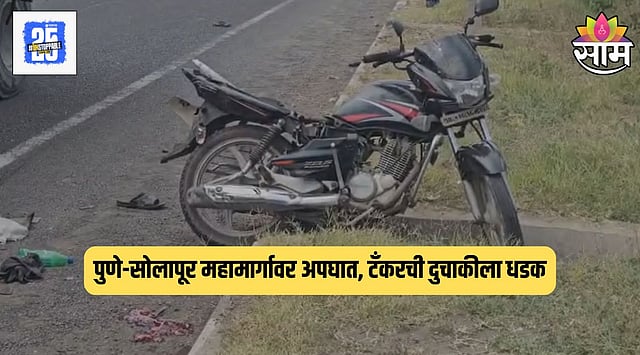 पंढरपूरवरुन घरी परतत असताना पवार दाम्पत्याच्या मोटरसायकलला टँकरने धडक मारली. या धडकीत मल्हारी पवार यांचा मृत्यू झाला, तर त्यांची पत्नी पंखाबाई गंभीररित्या जखमी झाल्या. सोलापूर-पुणे राष्ट्रीय महामार्गावर झालेल्या या दुर्घटनेमुळे परिसरात हळहळ व्यक्त केली जात आहे. या प्रकरणातील टँकरचालकाचा शोध सुरु असल्याची माहिती समोर आली आहे.