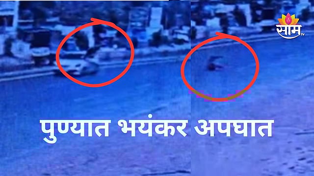 Sanaswadi Pune CCTV accident video worker killed : पुणे–अहिल्यानगर महामार्गावरील सणसवाडी येथे रस्ता ओलांडणाऱ्या एका मजुराला भरधाव कारने जोरदार धडक दिल्याची भीषण घटना घडली आहे. हा अपघात इतका भयानक होता की, धडकेनंतर संबंधित मजूर अक्षरशः फुटबॉलसारखा हवेत उंच उडून पुन्हा रस्त्यावर आदळला. अपघाताचा हा थरारक क्षण सीसीटीव्ही (CCTV) कॅमेऱ्यात कैद झाला असून, या घटनेत राजकुमार नावाच्या तरुण मजुराचा जागीच मृत्यू झाला आहे.