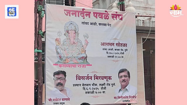 पुण्यात गेल्या काही दिवसांपासून गणेश विसर्जन मिरवणुकीच्या वेळे संदर्भात असलेला वादाचे पडसाद उमटू लागले आहेत. सकाळी ७ वाजता मिरवणूक सुरू करणार अशी भूमिका पुण्यातील कसबा पेठेत असणाऱ्या जनार्दन पवळे संघाकडून घेण्यात आली आहे. विशेष म्हणजे गणेशोत्सवापूर्वीच जनार्दन पवळे संघाकडून याबाबतचा फ्लेक्स सुद्धा उभारण्यात आला आहे. कसबा पेठेत असणाऱ्या या गणेश मंडळाने विसर्जन मिरवणुकीची वेळ फ्लेक्सच्या माध्यमातून जाहीर करत इतर गणेश मंडळांकडून होणारा आडमुठपणा मोडण्यासाठी हा निर्णय घेतल्याचं मंडळाकडून सांगण्यात आलं आहे. पुण्यातील कसबा पेठेतील या मंडळाकडून हा फ्लेक्स त्यांच्याच परिसरात लावण्यात आल्यामुळे सगळ्यांच लक्ष त्याच्याकडे जातंय.