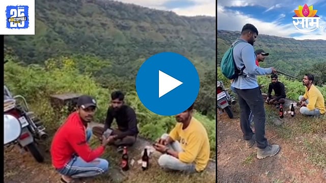 Shiv Premis confront youths for drinking liquor on Raireshwar Fort; viral video sparks outrage online. saamtv