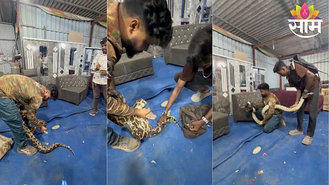मिळालेल्या माहितीनुसार, कल्याण पश्चिमेतील गंधारी परिसरात एका फर्निचरच्या शोरूममध्ये भलामोठा अजगर शिरल्याची घटना घडली. अचानक समोर आलेल्या या अजगरामुळे शोरूममधील कर्मचाऱ्यांमध्ये घबराट पसरली. घटनेची माहिती मिळताच वॉर फाऊंडेशनच्या सदस्यांना बोलावण्यात आले. त्यांनी तात्काळ घटनास्थळी धाव घेत अजगाराला मोठ्या शिताफीने पकडले.