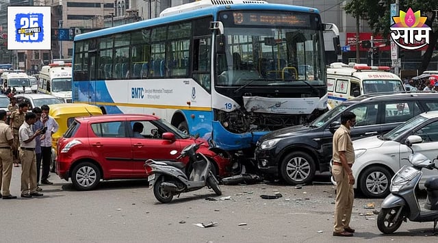 Accident News : बंगळुरूच्या चिन्नास्वामी स्टेडियमजवळ मोठा अपघात घडला. बीएमटीसीच्या (बंगळुरू मेट्रोपॉलिटन ट्रान्सपोर्ट कॉर्पोरेशन) एका बसने नऊ वाहनांना धडक मारली. चालकाचा बसवरील नियंत्रण सुटले आणि हा अपघात घडल्याची प्राथमिक माहिती समोर आली आहे. या भीषण अपघाताचा व्हिडीओ सोशल मीडियावर व्हायरल होत आहे.