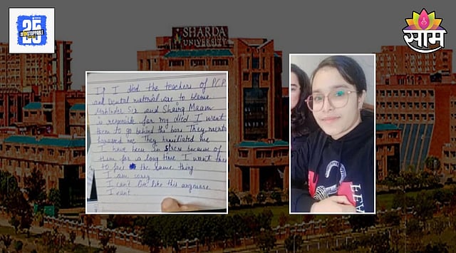 Student Suicide : काही दिवसांपूर्वी ओडिशामध्ये एका महाविद्यालयीन विद्यार्थिनीने लैंगिक छळाला कंटाळून स्वतःला पेटवून आत्महत्या केली होती. अशीच एक धक्कादायक घटना आता ग्रेटर नोएडामध्ये घडली आहे. ग्रेटर नोएडाच्या शारदा विद्यापीठात बीडीएसच्या दुसऱ्या वर्षात शिकणाऱ्या एका विद्यार्थिनीने आत्महत्या केली आहे. प्राध्यापकांकडून होणाऱ्या छळामुळे तरुणीने हा टोकाचा निर्णय घेतल्याचे म्हटले जात आहे.