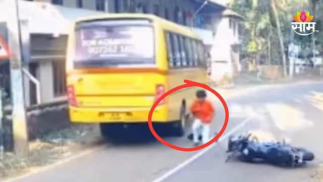 केरळमध्ये एका तरुणाच्या अपघाताचा थरकाप उडवणारा व्हिडिओ समोर आला आहे. रस्त्यावरून जाणाऱ्या एका तरुणाचे दुचाकीवरील नियंत्रण सुटल्याने तरुण धावत्या स्कुलबस खाली आला. सुदैवाने या दुर्घटनेत कोणतीही जीवित हानी झालेली नाही. बसचालकाच्या तत्परतेमुळे तरुणाचा जीव थोडक्यात वाचला. या अपघाताचा व्हिडिओ सोशल मीडियावर व्हायरल होत आहे.
