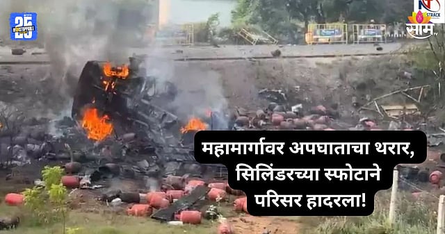 गॅस सिलिंडर घेऊन जाणारा ट्रक महामार्गावर उलटल्याने भीषण आग