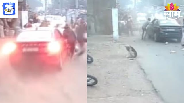 रस्त्यावर अपघातानंतर एकच खळबळ उडाल्याचं दिसत आहे. अपघातात जखमी झालेले लोकांनी तातडीने कारचालकाला घेरण्याचा प्रयत्न केला. परंतु चालक कारचा वेग वाढवून फरार झाला. चालकाने ५०-६० च्या वेगाने कार चालवली.