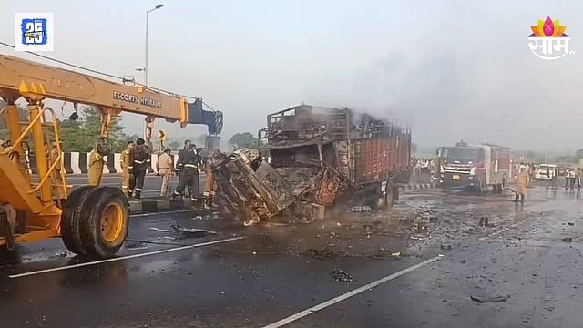 car-truck accident in Aligarh highway today : अलीगढजवळ भीषण अपघात! कार-ट्रकची समोरासमोर धडक होऊन आग लागली. चार जणांचा जागीच जळून मृत्यू, मृतांमध्ये दोन चिमुकल्यांचाही समावेश. स्थानिक प्रशासन घटनास्थळी दाखल.