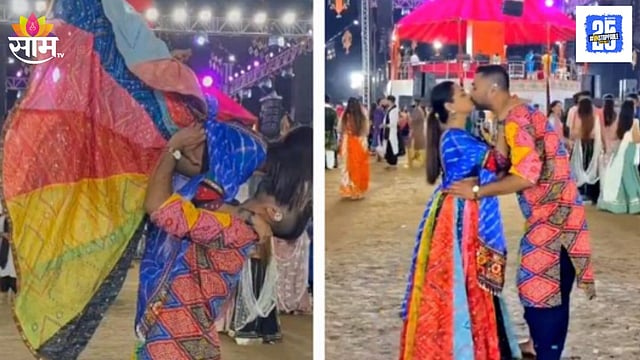 वडोदराच्या प्रसिद्ध युनाटेड वे गरबा मैदानावरून एक व्हिडिओ समोर आला आहे. या व्हायरल व्हिडिओमध्ये एक जोडपं दिसून येत आहे. जोडप्यानं ट्रडिशलन आऊटफिट घातलं आहे. गरबा खेळत असताना त्यांनी व्हिडिओ शूट केला. या व्हिडिओत जोडपं चुंबन घेत असल्याचं दिसून येत आहे. हा व्हिडिओ काही क्षणात सोशल मीडियात व्हायरल झाला. नेटकऱ्यांनी या व्हिडिओवर संताप व्यक्त केला आहे. मैदानात गरबा खेळत असताना चुंबन घेणं चुकीचं असल्याचं त्यांनी म्हटलंय. लोक या जोडप्याविरूद्ध कायदेशीर कारवाईची मागणी करत आहे.