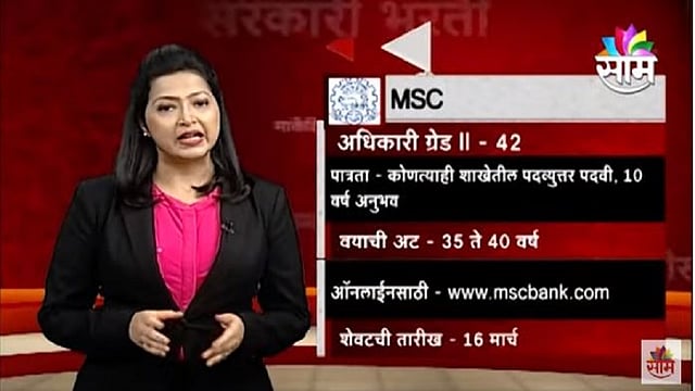 तरुणांनो तुमच्या यावेळी नोकरीच्या नव्या संधी आहेत महाराष्ट्र राज्य सहकारी बँकेतील. या ठिकाणी कसं करायचं अप्लाय आणि काय लागणार आहे पात्रता, त्यासाठी खाली दिलेला VIDEO पाहा.