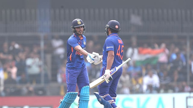 पहिल्या दोन सामन्यांत दमदार फॉर्ममध्ये असलेल्या शुभमन गिलकडून या सामन्यातही चांगल्या खेळीची क्रिकेटप्रेमींना आशा होती. कर्णधार रोहित शर्माने ८३ चेंडूत शतक पूर्ण केले. त्यानंतर शुभमन गिलने देखील शतक पूर्ण केलं. गिलने एक दिवसीय क्रिकेट करिअरमधील चौथं शतक ठोकलं. त्यानंतर २१२ धावांवर रोहितच्या रुपाने भारताचा पहिला धक्का बसला. त्यानंतर शुभमन ११२ धावा करून झेलबाद झाला.