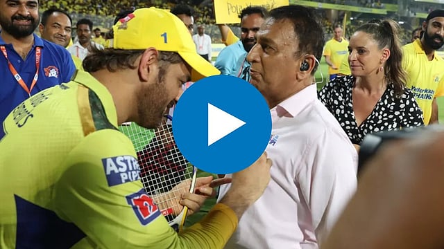 Sunil Gavaskar And Ms Dhoni Autograph Video: चेन्नई सुपर किंग्ज संघाचा आपल्या घरच्या मैदानावरील अखेरचा सामना रविवारी चेपॉकच्या मैदानावर पार पडला. या सामन्यात चैन्नई सुपर किंग्ज संघाला पराभवाचा सामना करावा लागला आहे.
