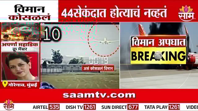 अहमदाबाद विमान अपघातातील मृतांचा आकडा 265 वर गेला आहे. यामध्ये महाराष्ट्रातील 103 जणांचा समावेश आहे. या अपघातात विमानातील 229 प्रवाशांसह 12 क्रू मेंबर्सचा मृत्यू झाला असून विमान कोसळलेल्या सरकारी रुग्णालयातील 24 जणांचाही या अपघातात मृत्यू झाल्याची माहिती आहे. अहमदाबादहून लंडनला 242 प्रवाशांना घेऊन जाणारं प्रवासी विमान अहमदाबादच्या मेघानीनगर परिसरात कोसळलं होतं. विमानाने अहमदाबादहून काल दुपारी 1.31 वाजता केलेल्या उड्डाणानंतर अवघ्या काही मिनिटांतच विमान खाली कोसळलं होतं. आता याच घटनेचा नवीन व्हिडिओ साम टीव्हीच्या हाती लागला आहे. अवघ्या 44 सेंकदात होत्याचं नव्हतं झाले.