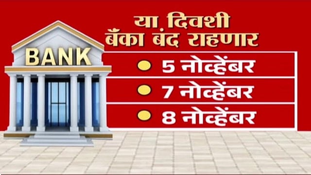 ५ नोव्हेंबर, ७ नोव्हेंबर, ८ नोव्हेंबर, ९ नोव्हेंबर, ११ नोव्हेंबर, १६ नोव्हेंबर, २२ नोव्हेंबर, २३ नोव्हेंबर आणि ३० नोव्हेंबर. नमूद केलेल्या सर्व दिवशी बॅंका बंद राहणार आहेत.