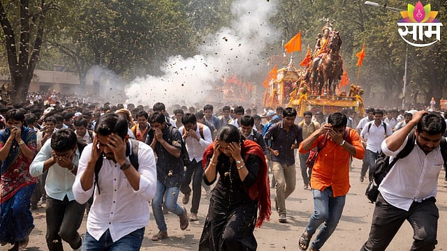 Students and professors run for safety after a sudden bee swarm disrupted the Shiv Jayanti procession at Dr. PDKV Akola. Saam Tv