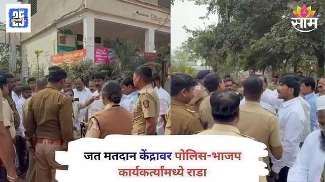 BJP supporters clash with police at Jat’s Shivaji Peth polling station during municipal elections. Saam Tv