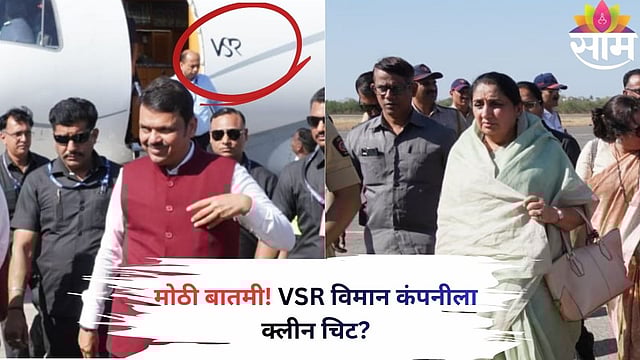नाशिकमध्ये मराठी भाषा गौरव दिनानिमित्त विश्व मराठी संमेलनाचे आयोजन केले आहे. याच कार्यक्रमाला फडणवीस यांनी हजेरी लावली. मुंबईवरून ते थेट विमानाने नाशिकला दाखल झाले. मात्र ज्या विमानाने त्यांनी प्रवास केला ते VSR कंपनीचे असल्याने चर्चांना उधाण आले. सरकारने VSR कंपनीला क्लीन चीट दिली का? असा प्रश्न यानिमित्तानं उपस्थित होत आहे. फडणवीस यांच्यासोबत सुनेत्रा पवार, मंत्री छगन भुजबळ हे देखील नाशिकमध्ये आल्याचे सांगितले जात आहे.