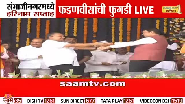CM Devendra Fadnavis, along with ministers Vikhe Patil and Girish Mahajan, performs the traditional ‘Fugdi’ dance during the 178th Harinam Week at Chhatrapati Sambhajinagar. Saam Tv