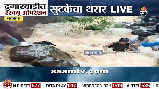 नाशिक जिल्ह्यातील त्र्यंबकेश्वर तालुक्यातील प्रसिद्ध दुगारवाडी धबधब्यावर रविवारी मोठा अनर्थ टळला. पावसाळ्याच्या पार्श्वभूमीवर पर्यटनासाठी मोठ्या प्रमाणात गर्दी उसळलेली असताना अचानक पाण्याची पातळी वाढल्याने जवळपास 15 ते 20 पर्यटक या धबधब्याच्या पाण्यात अडकले. यामध्ये काही तरुण व काही लहान मुले देखील होती. या पर्यटकांना वाचवण्यासाठी स्थानिक तरुणांनी जीवाची बाजी लावत धडाकेबाज रेस्क्यू ऑपरेशन राबवलं.