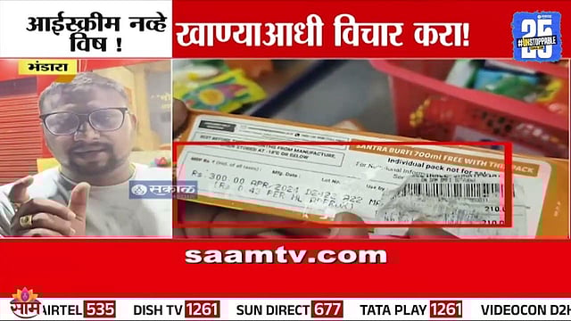 Ice Cream News : आता उन्हाळ्याचे दिवस सुरू झाले आहेत. अनेकजण आता आईस्क्रीम खाण्यावर जोर देतात. भंडाऱ्याच्या तुमसर येथील अभिषेक भुरे हा तरुण तुमसर शहरात असलेल्या रिलायन्स स्मार्ट मॉलमध्ये आईस्क्रीम खरेदी करायला गेला असता, त्याला एक्सपायरी झालेली आईस्क्रीम विकत देण्याचा प्रयत्न मॉलमधील कर्मचाऱ्यांनी केल्याचा धक्कादायक प्रकार उघडकीस आला. दिनशाज कंपनीची संत्रा बर्फी फ्लेवरची अभिषेक भुरे याने आईस्क्रीमची मागणी केली. त्याला त्या आईस्क्रीम चा बॉक्स जेव्हा देण्यात आला, त्या बॉक्सवर एकावर एक दोन स्टिकर लावल्याच्या आढळून आले. वरचा स्टिकर काढला असता खालील स्टिकरवर आईस्क्रीमची मॅन्युफॅक्चरिंग तारीख निघून गेल्याने ती एक्सपायरी झाल्याचं लक्षात आलं. त्या एक्सपायरी झालेल्या तारखेवर नवीन स्टीकर लावून तो विक्री करण्यात येत असल्याचा गोरखधंदा उघडकीस आला. त्यामुळे आता आईस्क्रीम खाणाऱ्यांनी सावधानगिरी बाळगून आईस्क्रीम खरेदी करण्याचा आणि स्वतःच्या जीवनाची काळजी घेण्याची गरज असल्याचे चित्र भंडाऱ्याच्या तुमसरात समोर आलं.