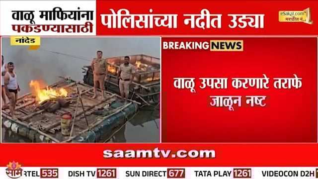 नांदेड जिल्ह्यातील गोदावरी नदीपात्रात अवैधरित्या वाळू उपसा करणाऱ्या टोळीवर नांदेड ग्रामीण पोलिसांनी मोठी कारवाई केली आहे. या कारवाईत पोलिसांनी तब्बल 21 लाख 75 हजार रुपयांचा मुद्देमाल जप्त केला असून, वाळू उपसा करणारे तराफे जाळून नष्ट करण्यात आले. विशेष म्हणजे ही कारवाई करताना पोलिसांनी थेट गोदावरी नदीच्या पाण्यात उड्या मारत अवैध वाळू उपसावर आळा घातला. यावेळी उत्तर प्रदेशातून आलेले मजूर अवैध वाळू उपसासाठी काम करत असल्याचे उघडकीस आले आहे. या प्रकरणी पोलिसांनी आठ आरोपींविरुद्ध नांदेड ग्रामीण पोलीस ठाण्यात गुन्हा दाखल केला असून, पुढील तपास सुरू आहे. नदीपात्रातील बेकायदेशीर वाळू उपसामुळे पर्यावरणासह जलसंपत्तीवरही धोका निर्माण झाला असून, पोलिसांनी केलेली ही धडक कारवाई कौतुकास पात्र ठरते आहे.