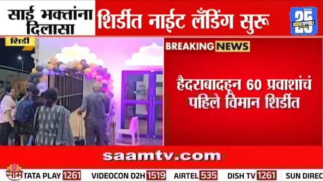 काल रात्री 60 प्रवाशांना घेऊन हैदराबाद येथून पहिलेच विमान साडेनऊ वाजेच्या दरम्यान शिर्डी विमानतळावर दाखल झालं. यापुढेही आता शिर्डी विमामतळावरुन रात्री लँडिंग होणार आहे. शिर्डी विमानतळावर रात्री पहिले विमान लँड झाल्यावर भाजपचे माजी खासदार सुजय विखे यांनी प्रवाशांचे स्वागत केले आहे. आता प्रवाशांना रात्रीच शिर्डीत दाखल होता येणार आहे. त्यामुळे साईबाबांचे दर्शन घेण्यासाठी येणाऱ्या प्रवाशांना फायदा होणार आहे. यामुळे बाहेरच्या राज्यातून येणाऱ्या प्रवाशांना रात्रीच शिर्डीत दाखल होता येणार आहे. त्यांना सकाळी लवकरच साईबाबांचे दर्शन घेता येणार आहे.