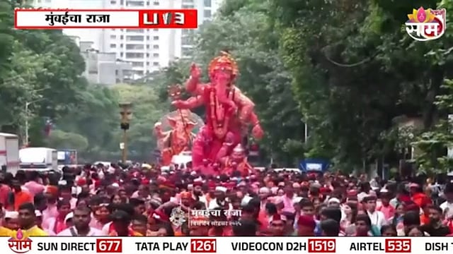 गणपती बाप्पाच्या मिरवणुकीत ढोल तशाच्या गजरात आणि गुलाबांच्या फुलांचा वर्षाव झाल्याचे दिसून येत आहे.