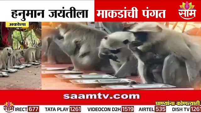हनुमान जयंतीच्या निमित्ताने अकोल्यात एक अनोखी पंगत बसलीय... ती पण वानरसेनेची... माणसांच्या पंगतीला लाजवेल अशीच ही पंगत आहे...चला तर मग या पंगतीत जाऊ अन् प्रसाद ग्रहण करु....