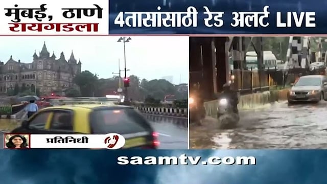 मुंबई, ठाणे आणि रायगड जिल्ह्यांसाठी पुढील चार तासांसाठी हवामान विभागाने रेड अलर्ट जाहीर केला आहे. राज्यात आज सकाळपासून अनेक ठिकाणी जोरदार पाऊस होत असून मुंबई, ठाणे, रायगड या किनारपट्टी भागांसह पुणे व साताऱ्याच्या घाटमाथ्यावर मुसळधार पाऊस पडत आहे. हवामान खात्याच्या अंदाजानुसार पुढील काही तासांत पावसाचा जोर आणखी वाढण्याची शक्यता आहे. मुसळधार पावसामुळे मुंबईत सखल भागांत पाणी साचले असून रस्त्यावरील वाहतुकीवर परिणाम झाला आहे. रेल्वे आणि बससेवाही संथ गतीने सुरू आहेत. प्रशासनाने नागरिकांना आवश्यक असल्याशिवाय बाहेर न पडण्याचे आणि सुरक्षित ठिकाणी थांबण्याचे आवाहन केले आहे.