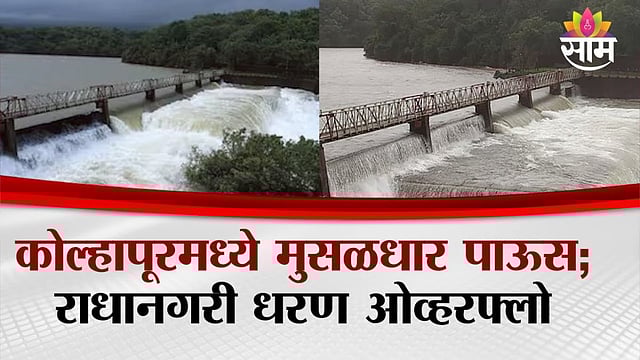 कोल्हापूर जिल्ह्यातील धरण क्षेत्रात सुरु असलेल्या मुसळधार पावसामुळे राधानगरी धरण ओव्हरफ्लो झाले आहे. भोगावती नदीत मोठ्या प्रमाणात पाण्याचा विसर्ग करण्यात आला आहे. त्यामुळे नदीकाठच्या नागरिकांना सतर्क राहण्याचं आवाहन प्रशासनाकडून करण्यात आलं आहे.दरम्यान, पंचंगंगा नदी ही दुथडी भरुन वाहते आहे. दोन महिन्यांमध्ये पंचंगंगा नदी पात्रा बाहेर पडलेली असल्याचे दिसून येत आहे. पावसामुळे पंचगंगा नदीची पातळी तब्बल ३५ फूटांवर पोहोचली आहे. त्यामुळे शहर आणि परिसरातील ५७ बंधारे पूर्णतः पाण्याखाली गेले आहेत. त्यामुळे पर्यायी मार्गाने वाहतूक सुरु ठेवण्यात आली आहे. आणखी पावसाचा जोर कायम राहिल्यास पूरस्थिती तीव्र होण्याची शक्यता व्यक्त केली जात आहे.