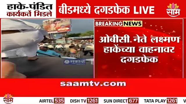 Stone pelting on Laxman Hake’s car during clash with MLA Vijay Singh Pandit’s supporters in Georai, Beed Saam Tv