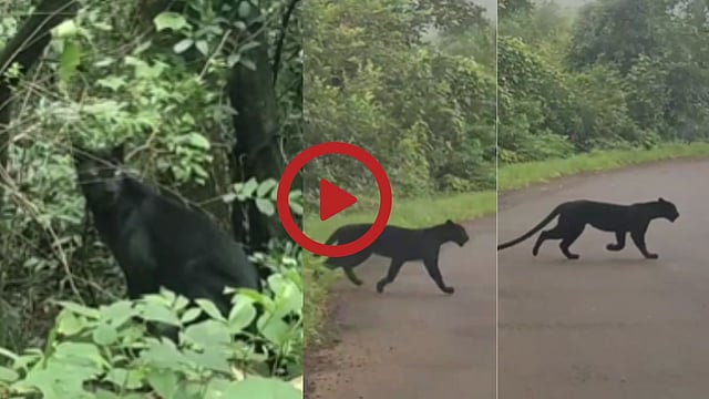 Black Panther Spotted In Guhagar : रत्नागिरीतील गुहागरमध्ये पिंपर गावच्या परिसरात ब्लॅक पँथर आढळून आला. हा ब्लॅक पँथर जंगलाच्या दिशेने जात असताना काही नागरिकांनी पाहिला आणि त्याचा व्हिडिओ कॅमेऱ्यामध्ये कैद केला. ब्लॅक पँथर हा तसा लाजाळू आणि निशाचर असल्याचे म्हटले जाते, गुहागर तालुक्यात अनेकदा ब्लॅक पँथरचे दर्शन होत असते. पिंपळमध्ये आढळून आलेला हा ब्लॅक पँथर बराच वेळ एकाच जागेवरती बसून राहिल्याचे व्हिडिओच्या माध्यमातून दिसून येत आहे. वाघाच्या प्रजातीमधील ही जात असल्याचे देखील म्हटले जाते. पावसाळ्यात कोकणातील जंगले घनदाट होत असतात आणि यामुळे अनेक दुर्मिळ प्राण्यांचे दर्शन पावसाळ्यात लोकांना होत असते. पिंपळ मार्गावरून जाणाऱ्या जंगली भागातून रस्त्यावरून अनेकदा अशा प्रकारचे प्राणी नजरेस येत असल्याचे देखील बोलले जात आहे. ब्लॅक पँथर अर्थात बगीरा याचा हा व्हिडिओ सध्या सोशल मीडियावर प्रचंड व्हायरल होत असून चर्चेचा विषय बनला आहे.