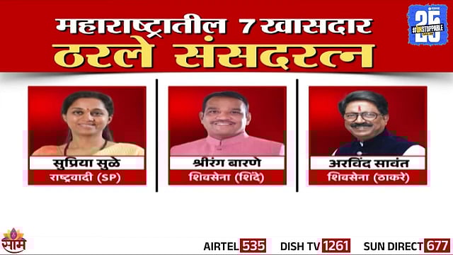 यंदा देशातील 17 खासदारांना संसदरत्न पुरस्कार 2025 जाहीर करण्यात आला आहे. यंदा संसदरत्न पुरस्कारासाठी महाराष्ट्राच्या खासदाराने बाजी मारली असून सुप्रिया सुळे, अरविंद सावंत यांच्यासह 7 खासदारांनी या यादीत स्थान पटकावले आहे. संसदेमध्ये उल्लेखनीय, सातत्यपूर्ण व उत्कृष्ट कामगिरी करणाऱ्या खासदारांना दरवर्षी प्राइम पॉइंट या संस्थेमार्फत हा पुरस्कार प्रदान केला जातो. लोकसभेत प्रश्न विचारणे, कायदेविषयक कामात अभ्यासपूर्ण योगदान देणे या निकषांवर हा पुरस्कार दिला जातो.