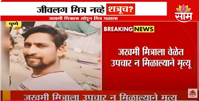 Pune accident case where friend abandons injured companion : दुश्मन ना करे दोस्त ने वो काम किया है... याची प्रचिती पुण्यात आली. मैत्रीच्या नात्याला काळीमा फासणाचे काम जिवलग मित्रानेच केलेय. अपघातात जखमी झालेल्या मित्राला सोडून मित्राने पळ काढला. उपचार न मिळाल्याने जखमी मित्राचा मृत्यू झालाय. बिबेवाडीमध्ये अपघात झाला, त्यामध्ये कृष्णा ससाने याला अपघात गंभीर जखम झाली. त्याच्यासोबत असणाऱ्या संतोष भिसे याने मदत करण्याऐवजी पळ काढला. उपचार न मिळाल्याने कृष्णाचा मृत्यू झाला. पुण्यात या घटनेची चर्चा होत आहे.