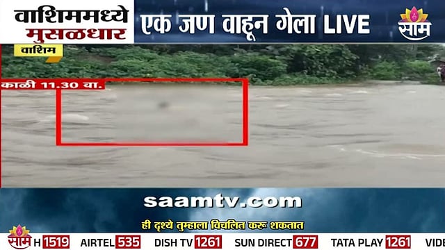 वाशिम जिल्ह्याला मुसळधार पावसानं झोडपून काढलं. पुरामुळे अनेक गावांचा संपर्क तुटला. नद्या ओसंडून वाहत आहेत. पुराच्या पाण्यातून नागरिकांकडून वाट काढण्याचा प्रयत्न केला जात आहे. असाच एक व्हिडिओ व्हायरल होत आहे. यात एक तरूण पुराच्या पाण्यातून वाट काढत होता. त्याचवेळी अचानक पाण्याचा प्रवाह वाढला आणि त्यात तोल गेल्यानं तरूण वाहून गेला.
