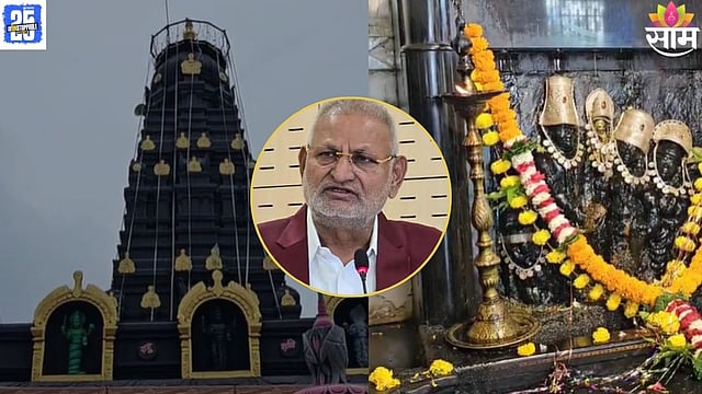 Manikrao Kokate offering prayers at Nandurbar’s Shani Temple amidst political uproar over viral Assembly rummy video. Saam Tv