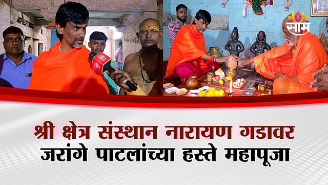 Manoj Jarange Patil and Mahant Shivaji Maharaj performing Mahapuja at Shri Kshetra Narayan Gad, seeking blessings from Vitthal-Rukmini and Sant Nagad Narayan Maharaj. Saam Tv