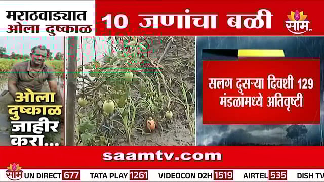 Death toll rises in Marathwada floods : मराठवाड्यात पावसाचा कहर सुरूच आहे. हवामान विभागाच्या अहवालानुसार गेल्या 24 तासांत नांदेड वगळता अन्य सातही जिल्ह्यांतील 129 मंडळांमध्ये अतिवृष्टीची नोंद झाली. बीड जिल्ह्यात सर्वाधिक म्हणजे 57 मंडलांत अतिवृष्टी झाली. अनेक ठिकाणी पूर आला आहे. बीड आणि धाराशिव जिल्ह्यांत पुरामध्ये अडकलेल्या 80 हून अधिक नागरिकांना वाचवण्यात यश आलं. नैसर्गिक आपत्तीमुळे आतापर्यंत 10 जणांचा मृत्यू झाला असून, 337 जनावरे दगावले. गेल्या 3 दिवसांत 2 लाख हेक्टरवरील पिके बाधित झाल्याचा प्राथमिक अंदाज आहे. यामुळे मराठवाड्यात ओल्या दुष्काळाची स्थिती आहे.