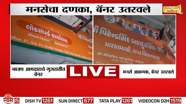 नवी मुंबई येथील सीवूड्स, सेक्टर-४२ मधील शेल्टर आर्केड या सोसायटीमध्ये भाजपचे गुजरातमधील आमदार वीरेंद्रसिंग बहादूरसिंग जडेजा यांनी त्यांचे पक्षाचे जनसंपर्क कार्यालय थाटले आहे. पण त्याच्यावरील पाटी ही पूर्णपणे गुजराती मध्ये होती. मनसे, भाजप नवी मुंबई मधील पदाधिकारी व इतर मराठी माणसांचा दबाव आल्यानंतर ती पाटी गुरुवारी १७ जुलै रोजी मराठीत करण्यात आली.